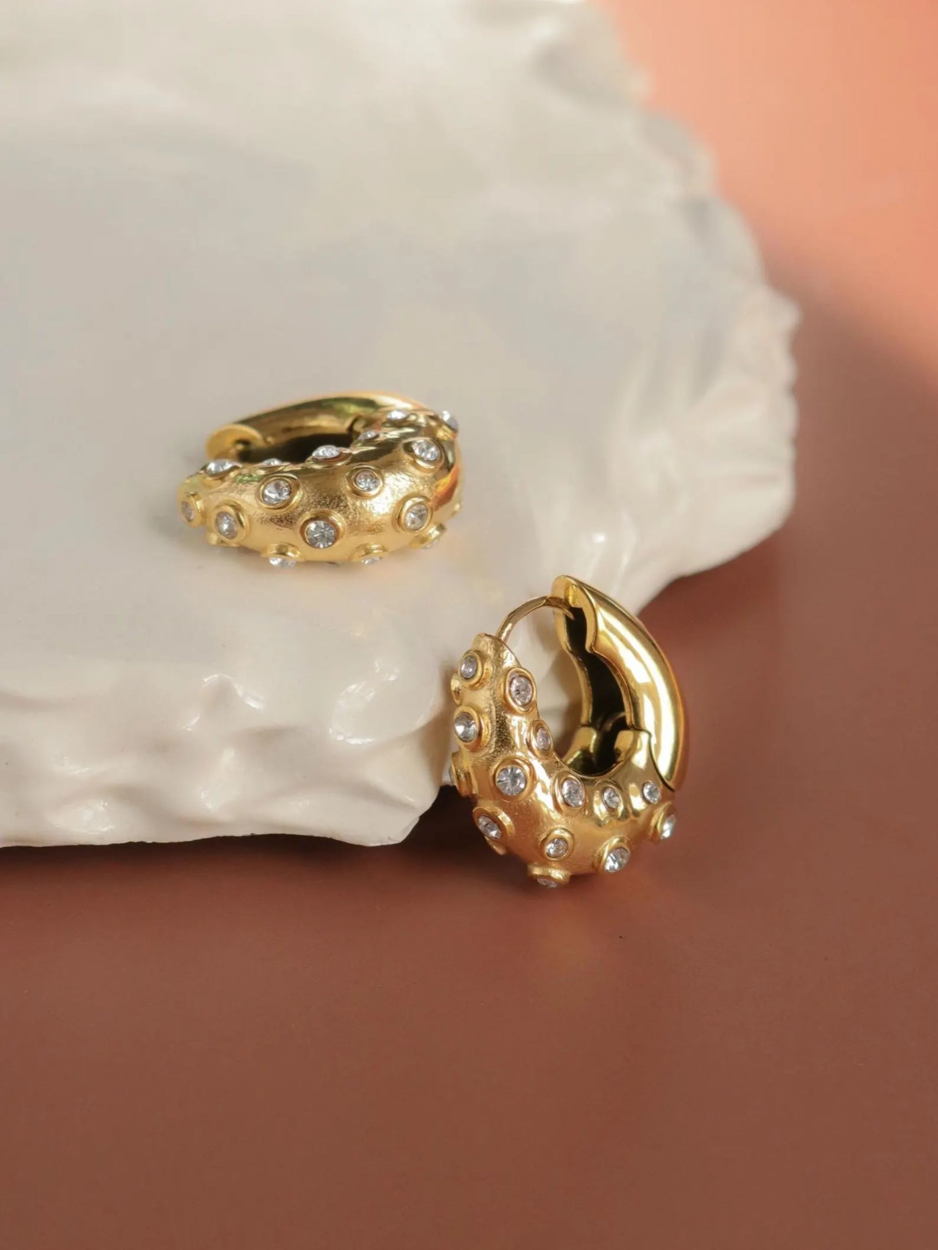 18K Gold Plated 316L Stainless Steel, Cubic Zirconia.